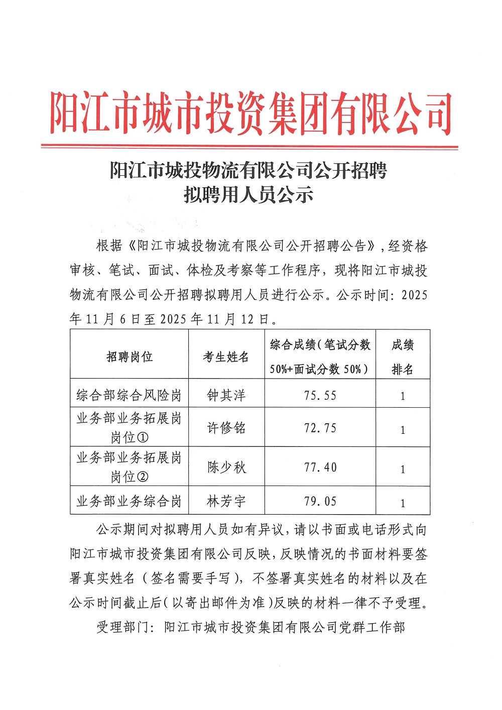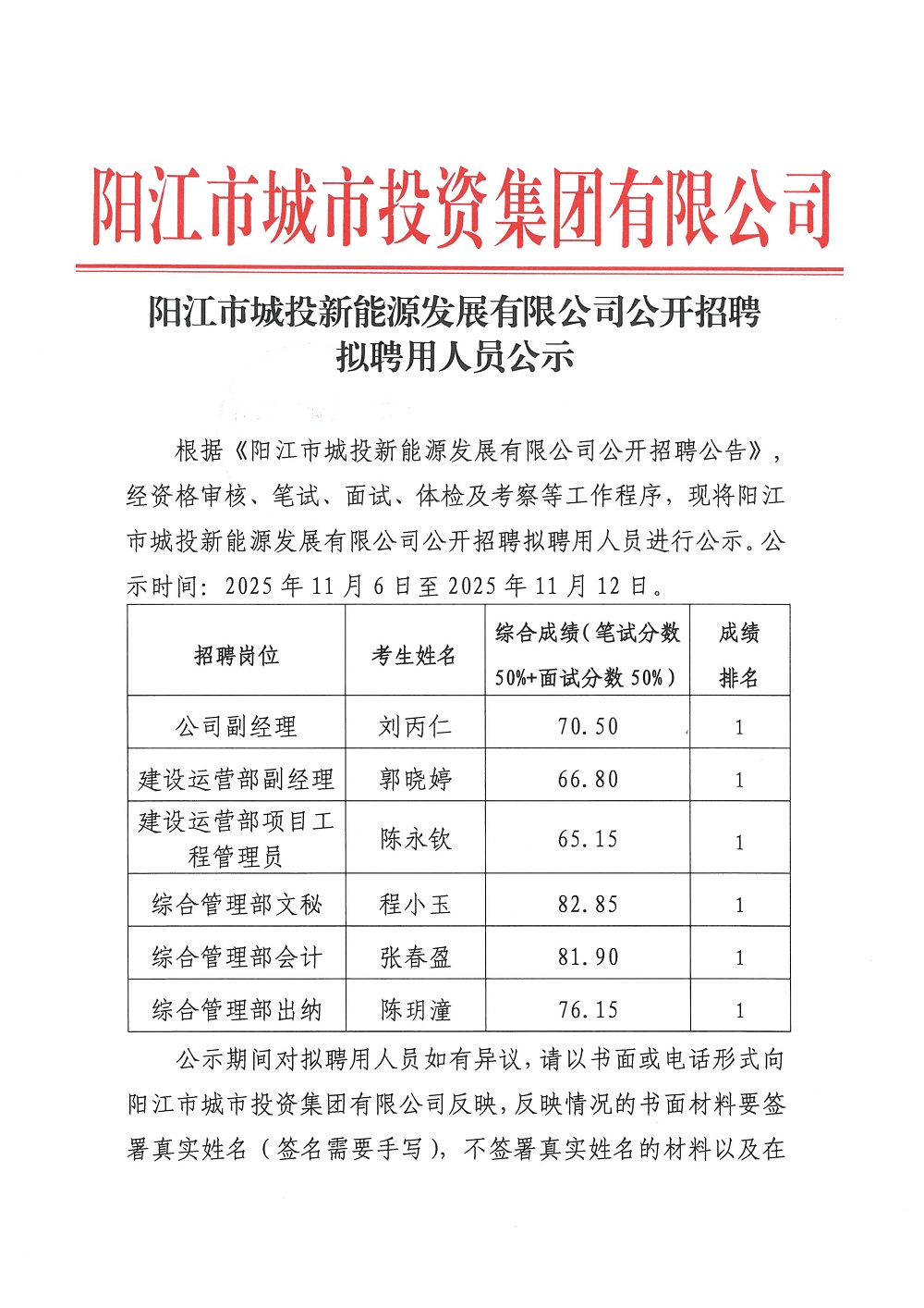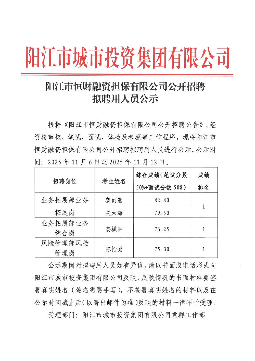 陽江市城投新能源發(fā)展有限公司、陽江市數(shù)字科技發(fā)展有限公司、陽江市恒財融資擔保有限公司、陽江市城投物流有限公司公開招聘公告