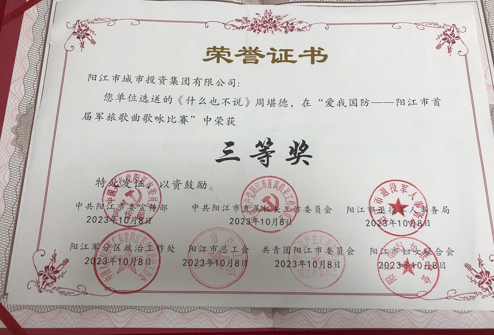 陽(yáng)江市首屆軍旅歌曲歌詠比賽三等獎