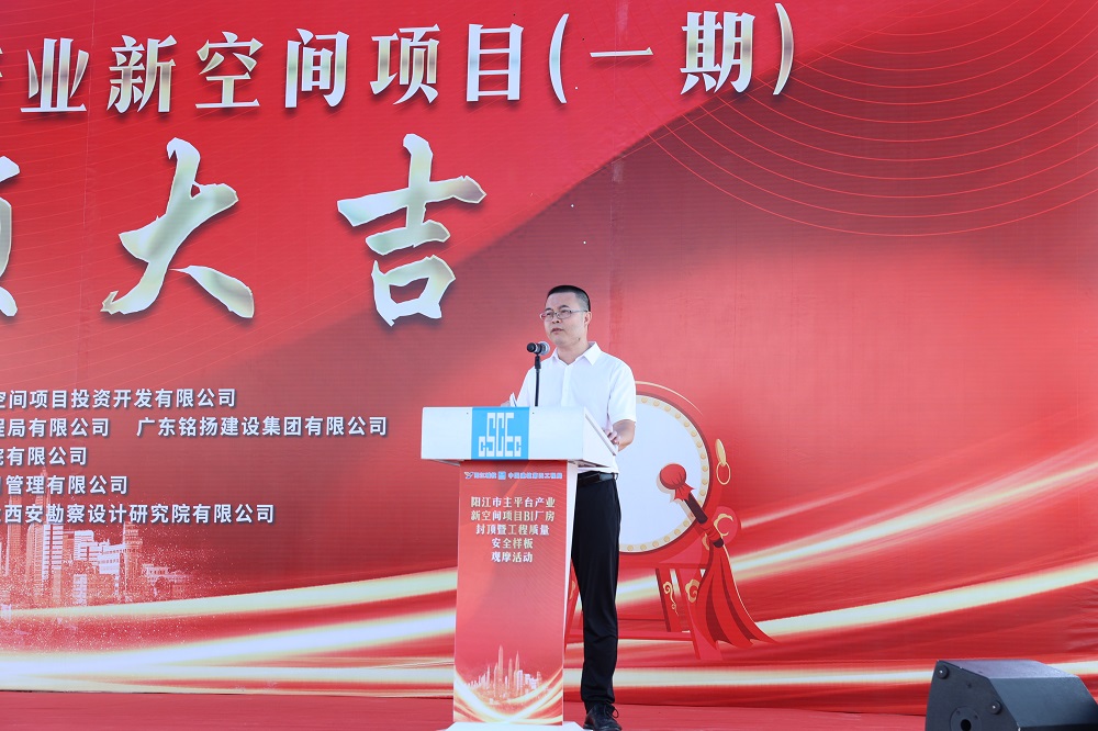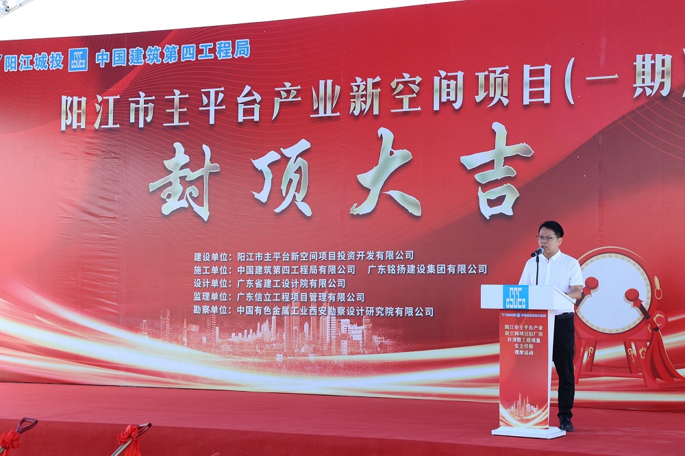 繼工程質(zhì)量安全樣板觀(guān)摩活動(dòng)后,陽(yáng)江市主平臺產(chǎn)業(yè)新空間項目封頂儀式在熱烈而莊重的氣氛中拉開(kāi)帷幕。